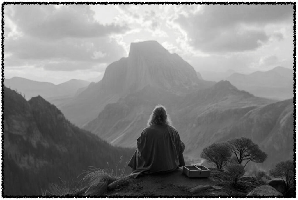 He sat before the mountain, which was not a real mountain, and waited, for such is the way of these things. Then, from the summit, falling into his mind like snow, came a white voice, which was also not a voice, saying: